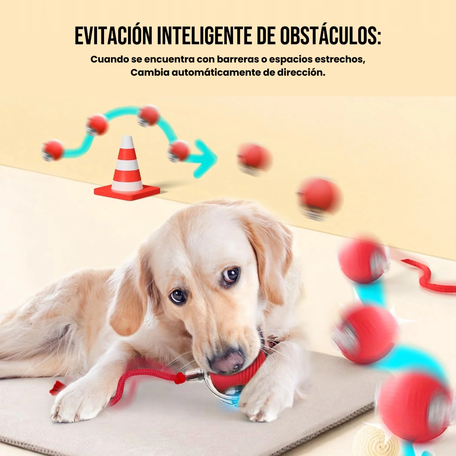 Modo interactivo (luz amarilla): la pelota solo se mueve cuando tu mascota la empuja.
